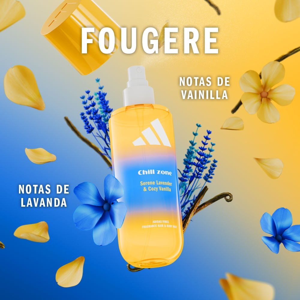 Rocía Vibes por todo tu cabello y cuerpo y mejora tu estado de ánimo con las nuevas brumas de adidas.