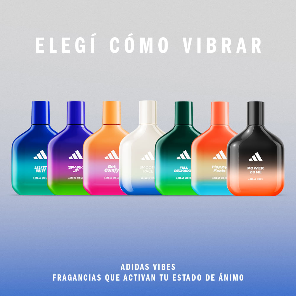Elegí como vibrar con las nuevas fragancias Adidas. Vibes Power Zone Eau de Parfum deja una sensación audaz y poderosa, como si estuvieras a punto de lanzarte a una nueva aventura. Con notas de oud y néctar de ciruela, es una fragancia intensa y envolvente, de larga duración, ideal para acompañarte todo el día. Su fórmula es vegana, está dermatológicamente testeada y su packaging está hecho con materiales reciclados, porque sentirse bien también es elegir mejor. Descubrí la colección completa Vibes, una línea de 10 fragancias pensadas para potenciar tu estado de ánimo