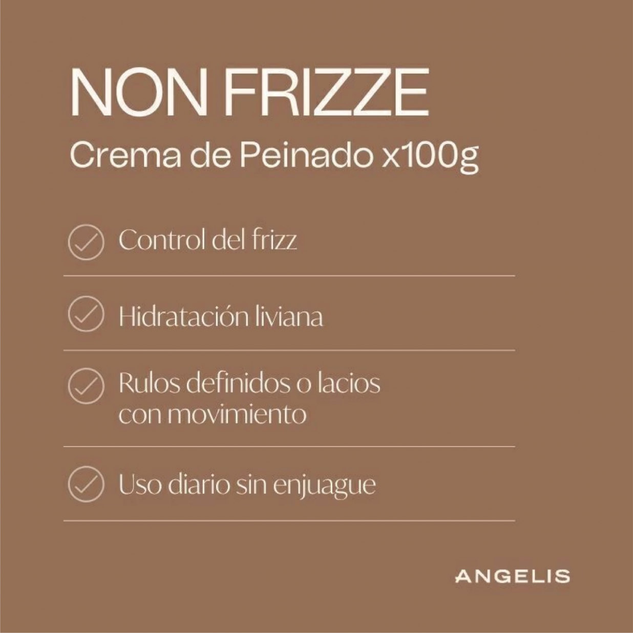 Non Frizze acompaña su movimiento natural e hidrata con suavidad, dejando una textura flexible, suave y con vida. Su fórmula liviana sin sulfatos ni parabenos controla la estática, protege de la humedad y revitaliza rulos y lacios. Porque cuando tu pelo está bien, vos también.