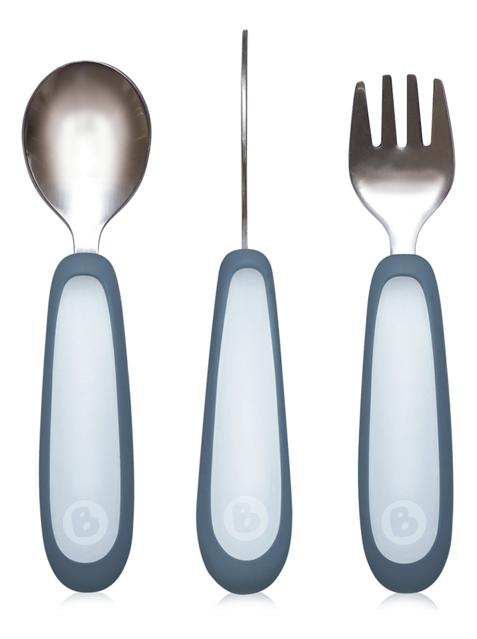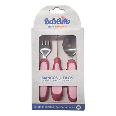 Este juego de cubiertos es el paso ideal entre las primeras cucharas y los cubiertos de adulto. Puntas redondeadas: Permiten que tu pequeño aprenda a usar cuchillo y tenedor protegiendo su boca, dientes y encías. Base de cuchara ancha y profunda: Esta cuchara ancha facilita recoger la comida y su profundidad hace que entre más comida en su boca. Mangos: Sus mangos ergonómicos brindan mejor agarre y resistencia al deslizamiento, haciendo su uso fácil y seguro. Fácil de limpiar y libre de BPA: Estos cubiertos de acero inoxidable son fáciles de limpiar y aptos para lavavajillas. Todos nuestros productos están libres de BPA, BPS y ftalatos. Composición: Filos: Acero Inoxidable. Mangos: PP y TPE.