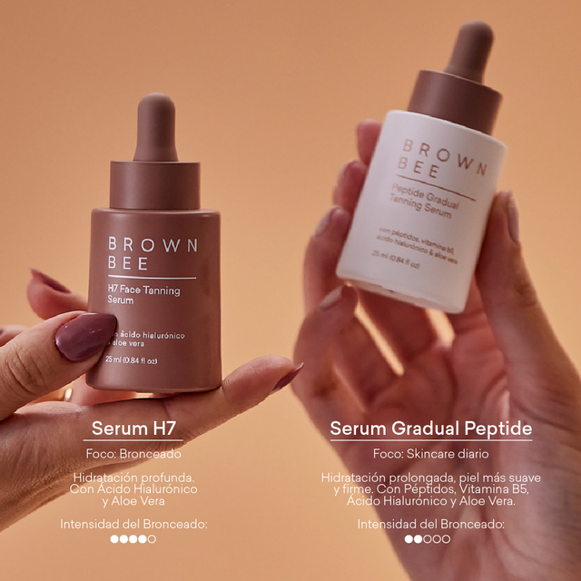 Mezclá entre 8 a 12 gotas del Serum H7 con tu crema hidratante favorita en la palma de tu mano y aplicalo sobre la cara, cuello y escote. Recomendamos hacer la aplicación durante la noche, aunque tambien podes usarlo durante el día! Si buscas un tono mas claro o generar el color progresivamente, agregá entre 4 a 6 gotas durante varios días seguidos hasta obtener el resultado deseado. Mientras más cantidad de gotas agregues, más color tendrás.No te olvides de enjuagar el producto una vez pasadas las 8hs