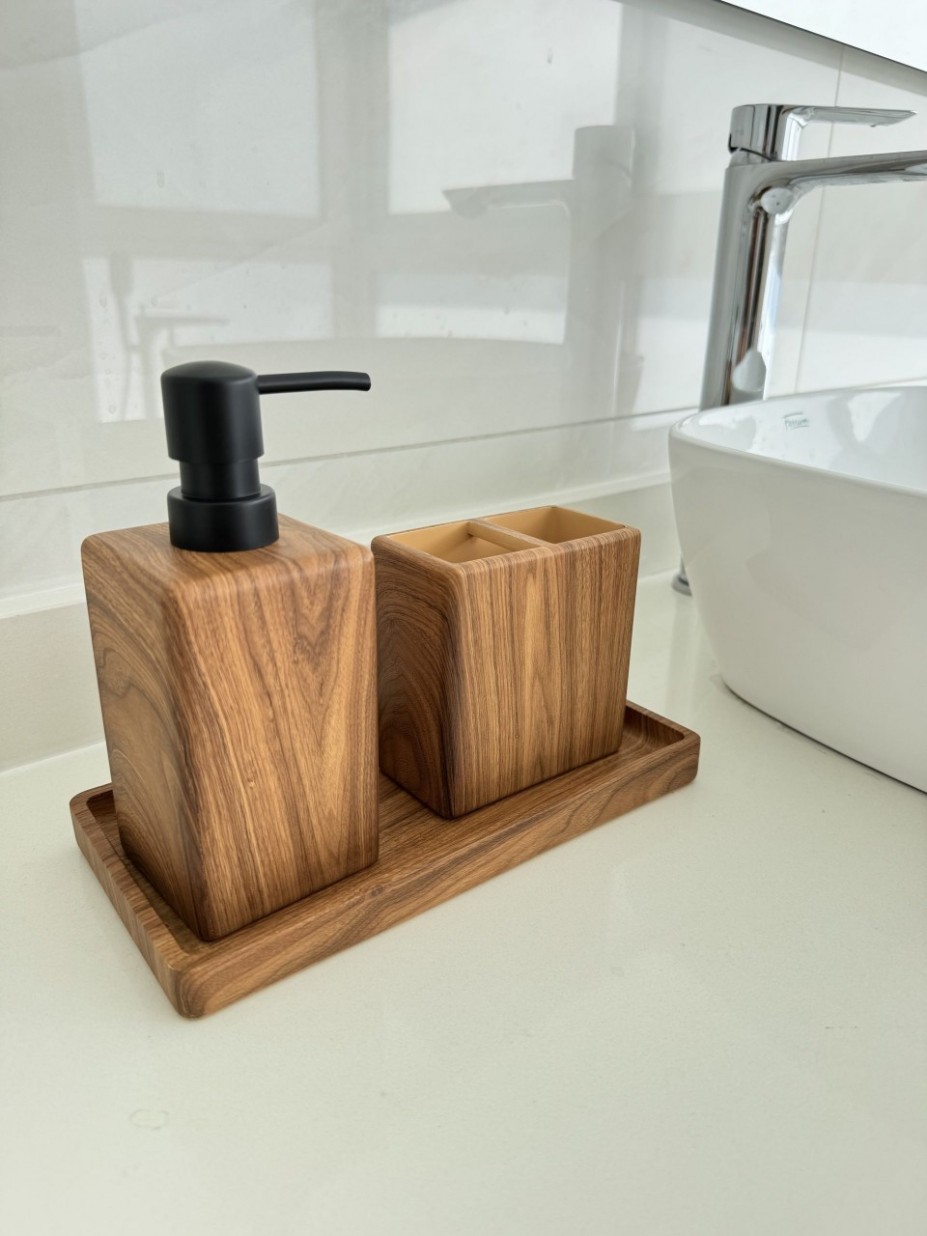 Dispenser de poliresina símil madera