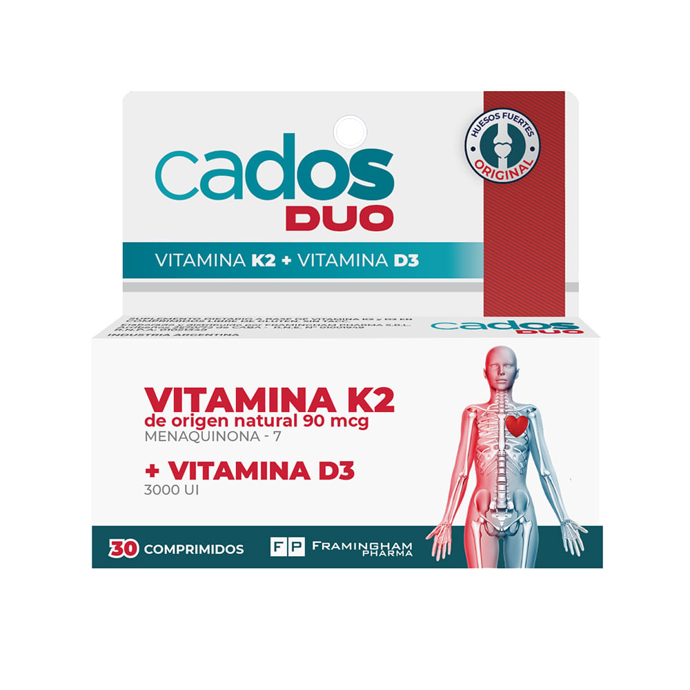 CADOS DUO ayuda a cuidar la salud osea y cardiovascular. Ademas contiene beneficios a nivel inmunologico, en la calidad de la piel, disminución de procesos inflamatorios, prevención de demencia (Alzheimer) y mejorando la función renal.
