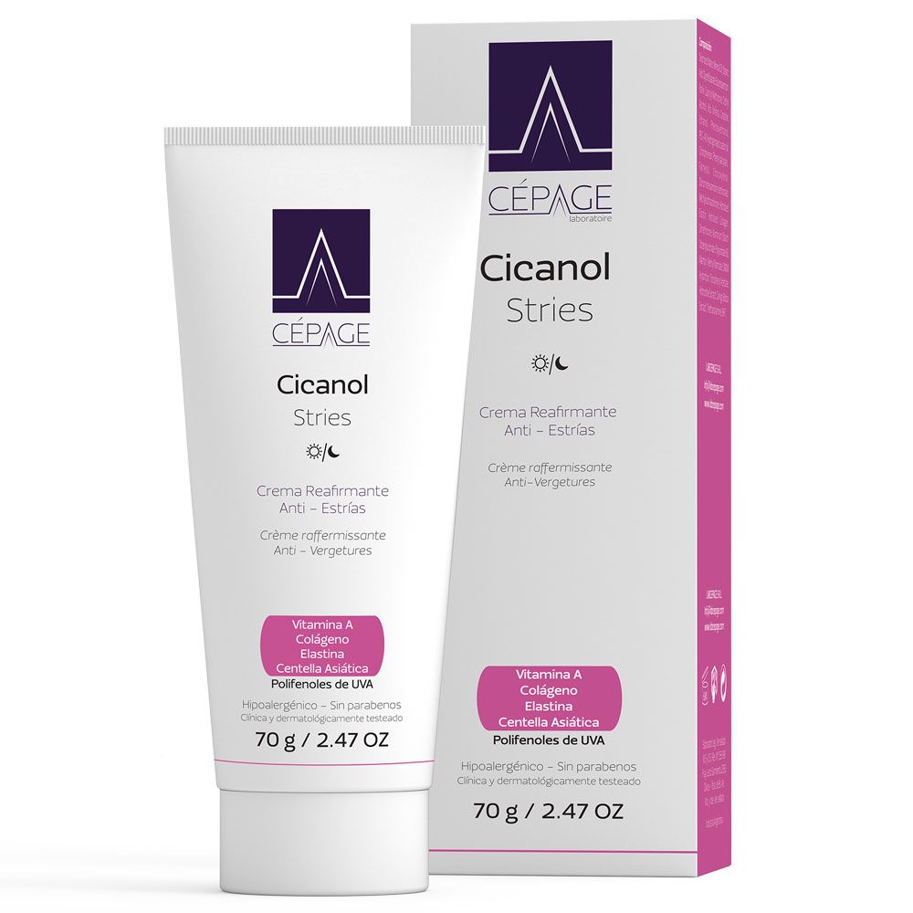 Controla y ayuda a prevenir las estrías. Cicanol Stries aporta a tu piel la elasticidad, tonicidad y suavidad que ésta necesita para lucir joven y firme. Combina principios activos que fomentan la producción de fibras de colágeno y estimulan la división celular, regenerando la piel. Ayuda a mejorar el aspecto de la piel previniendo la formación de estrías. Hidrata en profundidad, calmando y aliviando la tirantez de la piel, y posee un alto efecto antioxidante gracias a nuestros exclusivos polifenoles de UVA. Crema Reafirmante - Anti-Estrías.