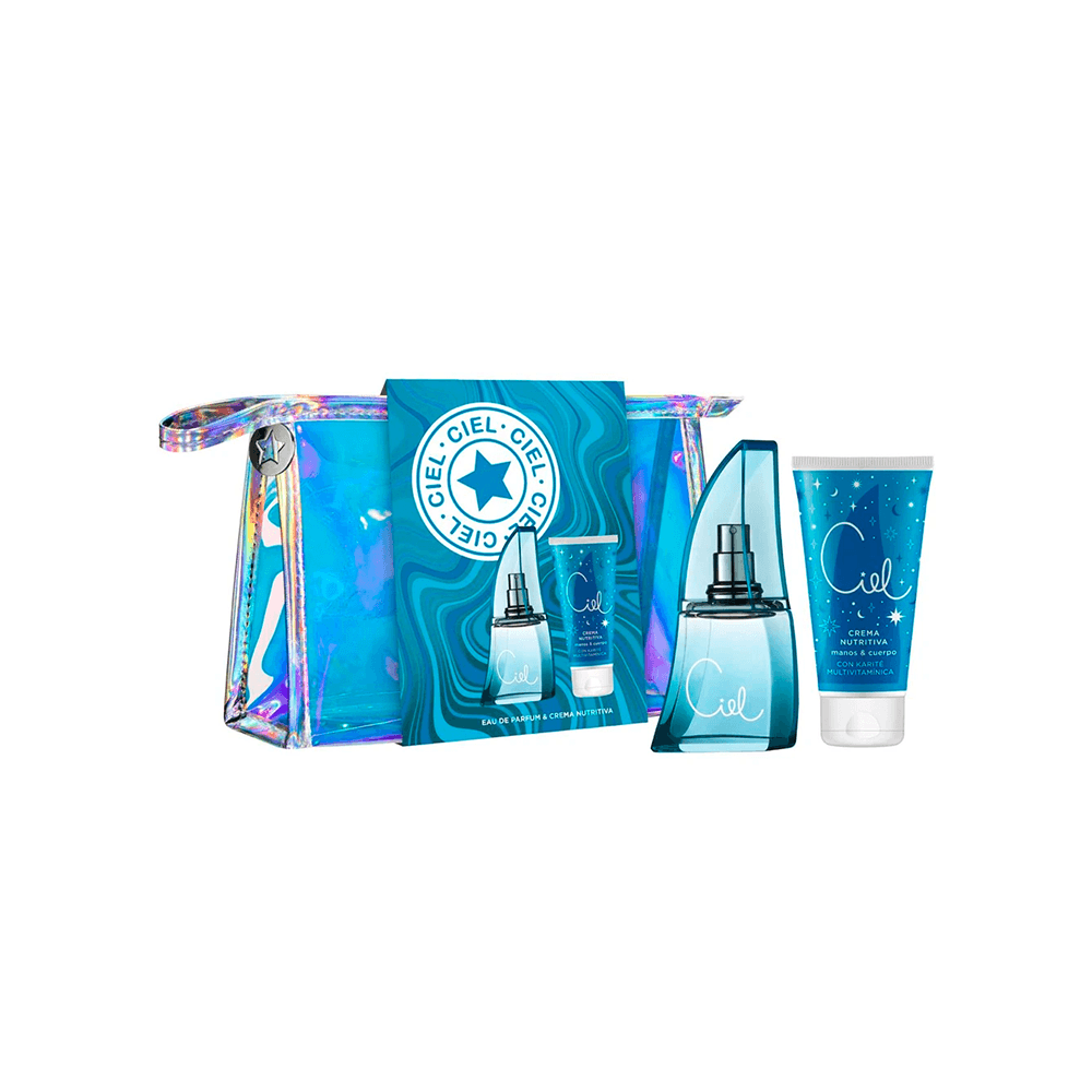 Este estuche Ciel trae: Neceser + Edt x 50 ml + Crema x 85 gr.