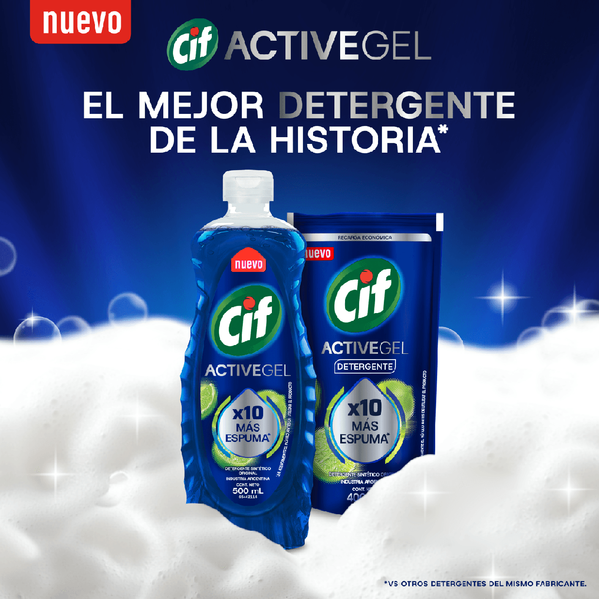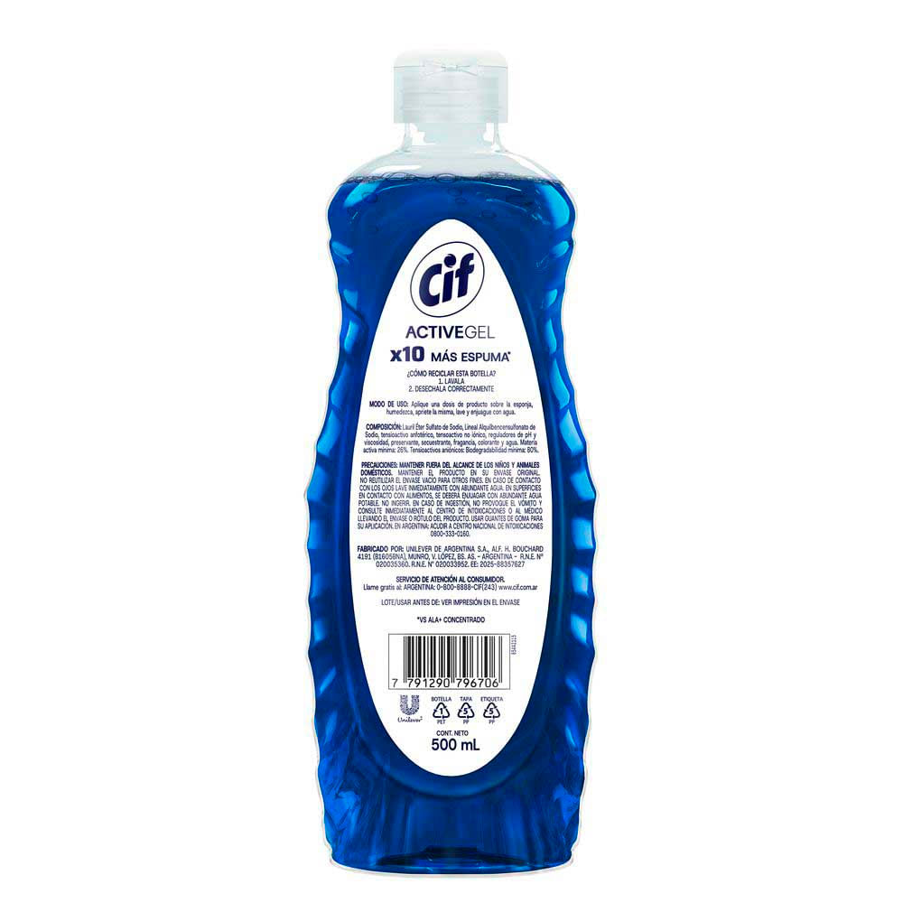 Descubrí la revolución en el lavado de platos con el nuevo Cif Active Gel Original, el detergente diseñado para quienes buscan máxima eficacia. Su exclusiva Tecnología Active Gel genera 10 veces más espuma, una espuma de máxima consistencia y duración, garantizando un desengrase efectivo y una experiencia de lavado de platos superior. Su fórmula con activos 100% anti grasa aseguran un máximo desengrase dejando tu vajilla impecable. Este es el mejor detergente del mercado, con mayor nivel de activos anti grasa, diseñado para darte un desengrase imbatible y un brillo extraordinario. Olvidate de la grasa y viví una nueva experiencia con un detergente concentrado que mejora todos tus lavados.