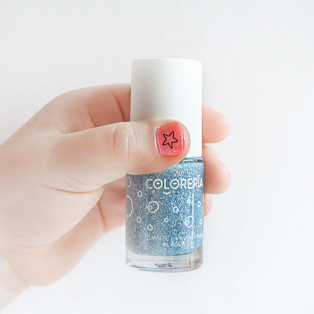 Contiene 3 esmaltes de 5ml (Rosa, Lila y Glitter) y una plancha de 16 tatuajes para decorar las uñas.