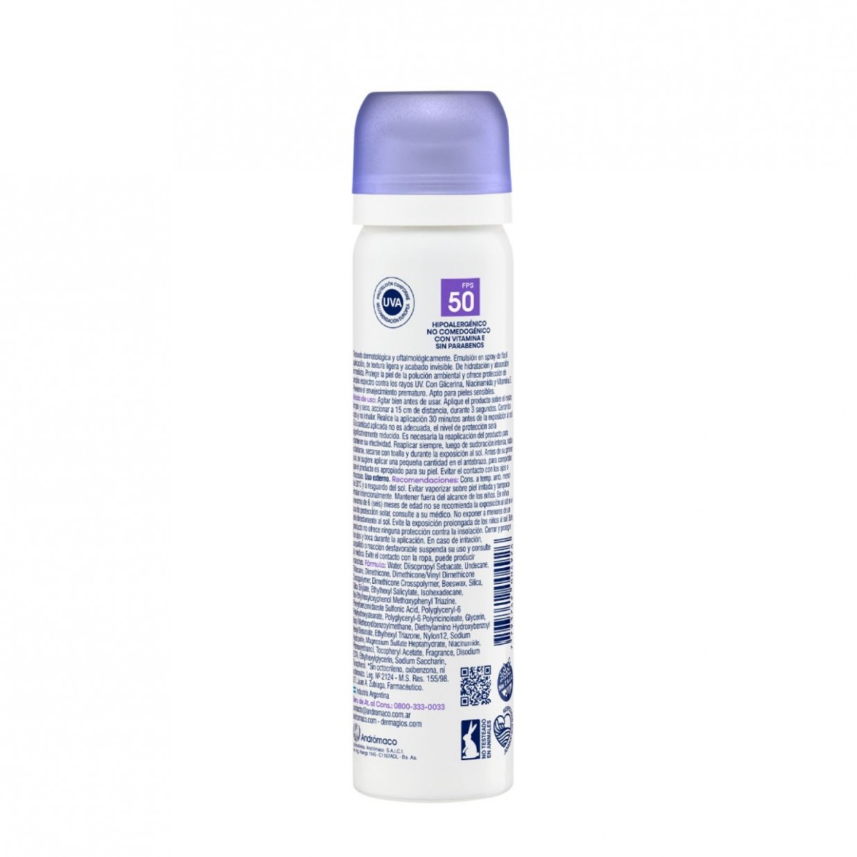Emulsión en spray de fácil aplicación, de textura ligera y acabado invisible. De hidratación y absorción inmediata.