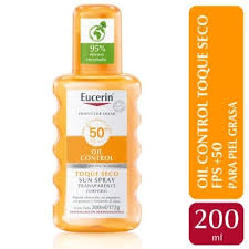 Eucerin Protector Solar Body Spray Transparente FPS 50 toque seco ,Resistente al agua.El Protector solar en spray transparente Eucerin Sensitive Protect es un producto que no deja residuos visibles en la piel. Además, protege contra los rayos del sol UVA, UVB y luz visible de alta energía (HEVIS). Este protector solar corporal avanzado en spray es 100% transparente, no pegajoso, de rápida absorción y resistente al agua. Su fórmula contiene Licochalcona A, un potente antioxidante que protege las células de la piel contra los daños en la piel inducidos por el sol. También posee FPS 50 y un sistema de filtros UVA/UVB que brinda un cuidado confiable contra las quemaduras solares. Está probado en pieles normales a mixtas y grasas. Es ideal para la piel con vello o para usar sobre el cuero cabelludo. BENEFICIOS - Spray 100% transparente - Alta protección solar corporal - Resistente al agua - Ofrece FPS 50 y protección UVA - Apto para todo tipo de piel 1) Aplicar generosamente Eucerin Sensitive Protect Protector solar en spray transparente con FPS 50 antes de exponerse al sol. 2) Repetir el procedimiento con frecuencia, especialmente después de nadar, secarse con toalla o transpirar, para mantener la protección original. 3) No permanecer demasiado tiempo al sol, incluso al usar protector solar. La exposición excesiva al sol conlleva un riesgo grave para la salud.