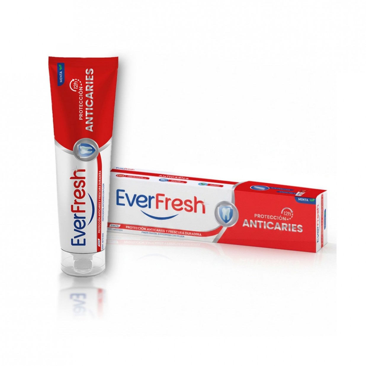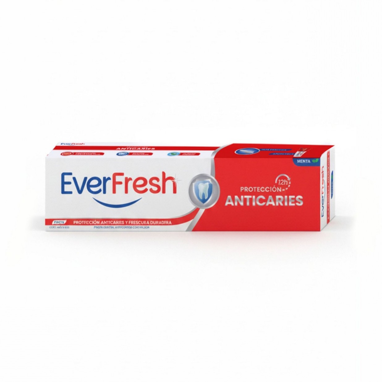 La Pasta Dental Everfresh Anticaries ofrece una protección completa para tu salud bucal, ayudando a prevenir la formación de caries y manteniendo tu aliento fresco por más tiempo. PROTECCIÓN ANTICARIES Formulada especialmente para brindar protección contra las caries durante 12 horas, cuidando el esmalte dental y fortaleciendo los dientes. SABOR REFRESCANTE Disfrutá de un agradable sabor a menta que deja tu boca fresca y limpia después de cada cepillado.