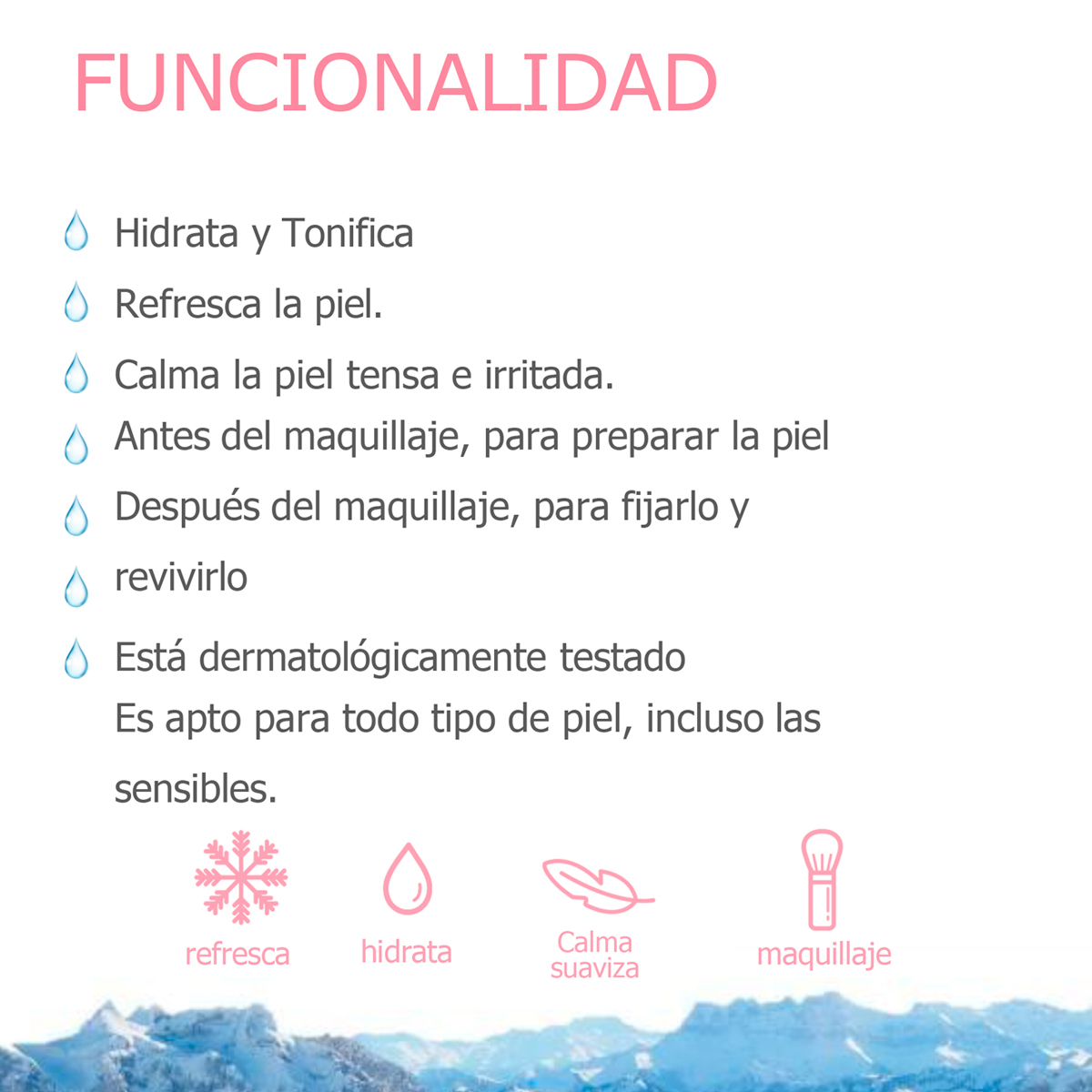 Hidrata, refresca y calma la piel con agua mineral natural de los Alpes franceses. Su pH neutro y pureza excepcional lo hacen ideal para todo tipo de piel, incluso las sensibles. Un gesto esencial de skincare para usar antes, durante y después del makeup.