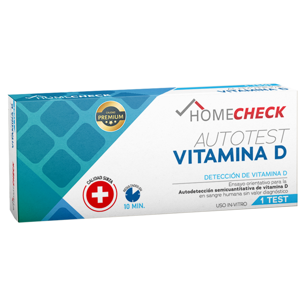 El HomeCheck Autotest Vitamina D es una prueba rápida e inmunoensayo diseñado para medir los niveles de vitamina D en sangre. Ideal para detectar deficiencias de vitamina D, este autotest ofrece resultados en tan solo 10 minutos, permitiendo evaluar si los niveles de vitamina D son suficientes, insuficientes o deficientes. Con una alta precisión de 94.4%, este test es perfecto para quienes buscan monitorear su salud ósea y general, ya que la vitamina D es esencial para la absorción de calcio y la salud inmunológica.