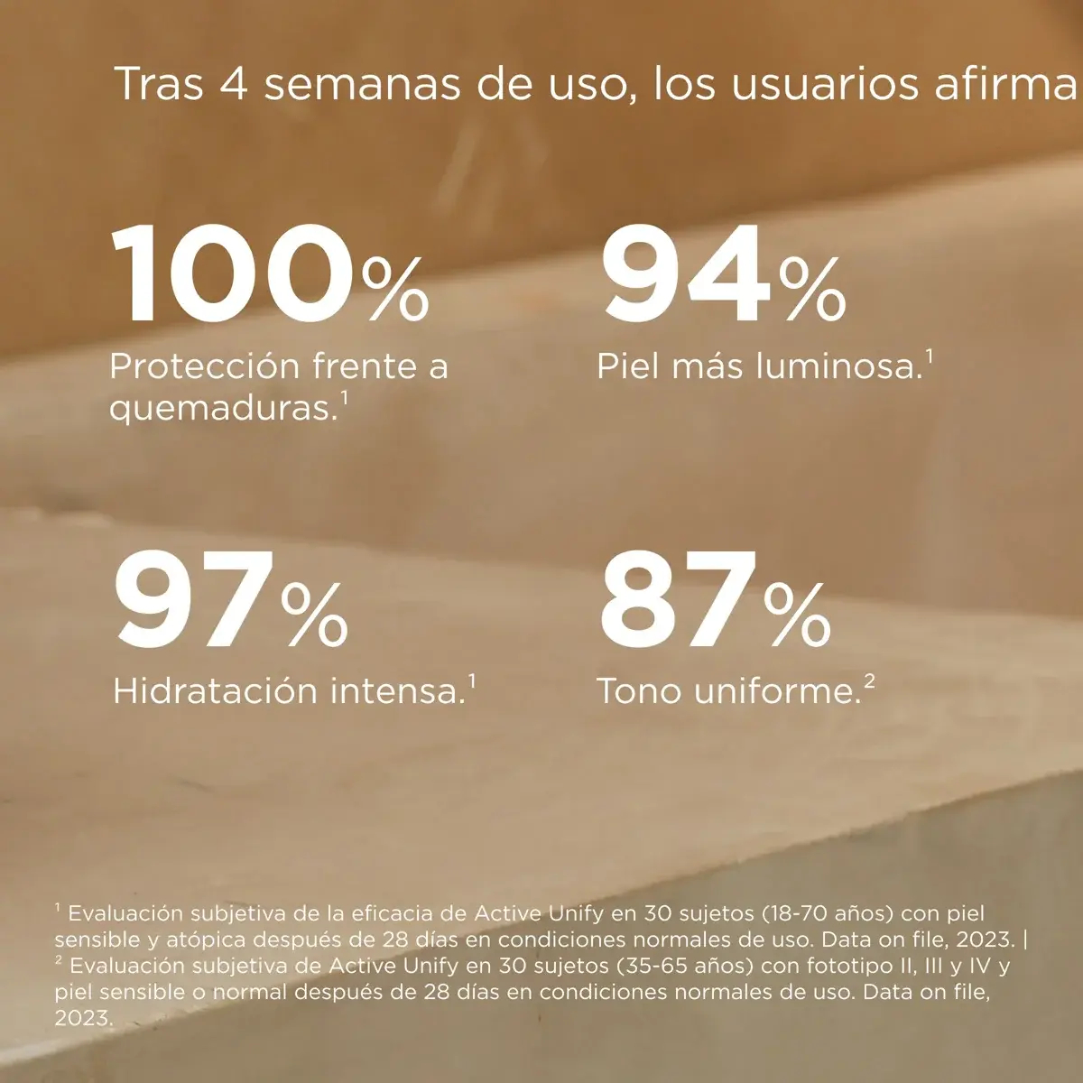 Protector solar facial de muy alta protección Uv de uso diario para ayudar a corregir las hiperpigmentaciones derivadas de la radiación solar aclarando y unificando el tono de la piel gracias a la triple acción despigmentante de DP3-Unify complex.
