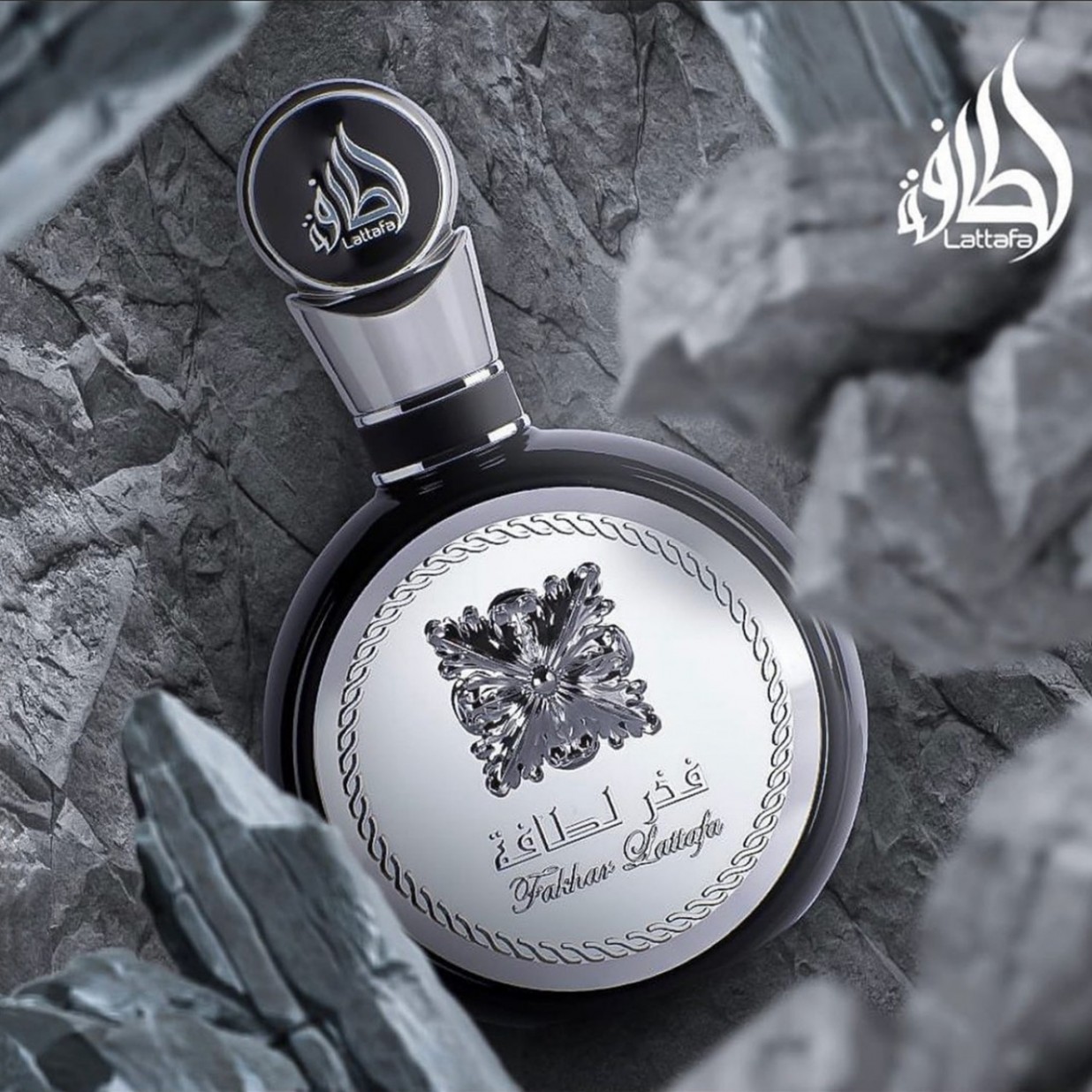 Fakhar Black de Lattafa Perfumes es una fragancia de la familia olfativa Ámbar para Hombres. Esta fragrancia es nueva. Las Notas de Salida son manzana, bergamota y jengibre; las Notas de Corazón son lavanda, salvia, bayas de enebro y geranio; las Notas de Fondo son haba tonka, Amberwood, cedro y vetiver ....Inspirado en YVES SAINT LAURENT