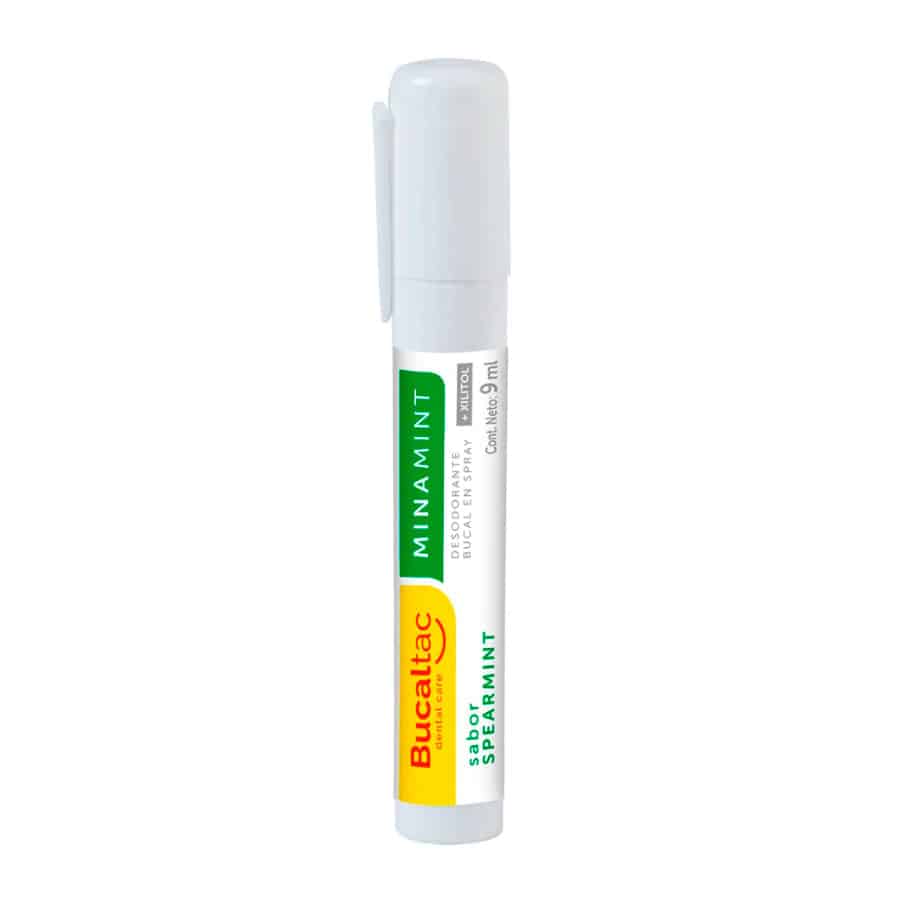 El desodorante bucal en spray BUCALTAC Minamint está formulado para refrescar el aliento y combatir el mal aliento de forma práctica y efectiva. En primer lugar, su formato liviano y portátil permite utilizarlo en cualquier momento del día, cuando se necesite una sensación inmediata de frescura. El desodorante bucal en spray es una gran adición para quienes buscan practicidad.