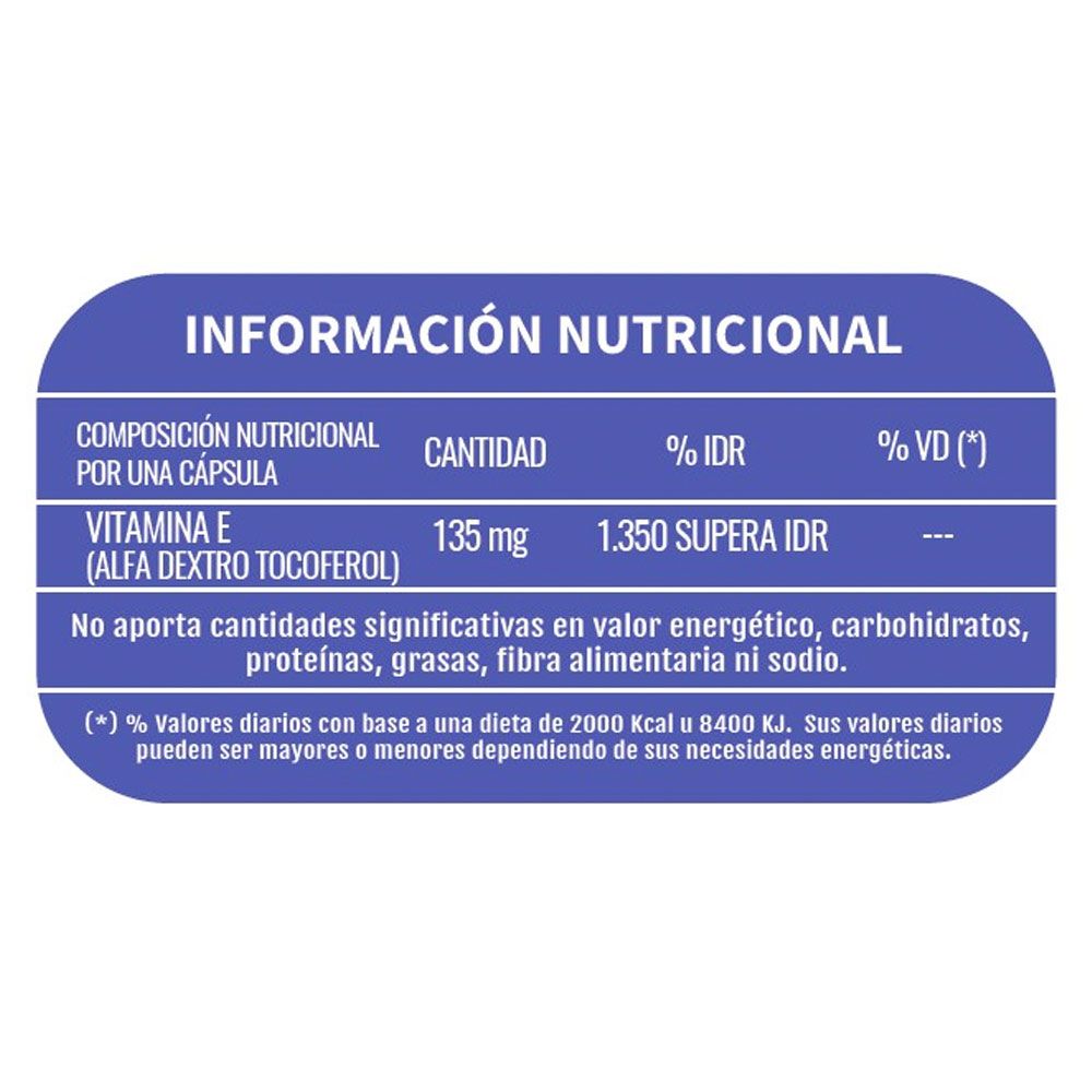 La Vitamina E es un nutriente esencial liposoluble. Actúa como antioxidante, al ayudar a proteger las células contra los daños causados por los radicales libres. Fácil absorción que minimiza la alteración gastrointestinal.