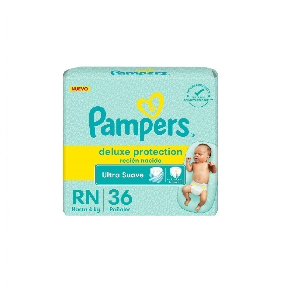 Pampers Deluxe Protection Recién Nacido cuenta con la máxima absorción y suavidad de Pampers para proteger delicadamente la piel de tu bebé desde el primer día. Además cuenta con indicador de humedad para saber cuando es el momento del cambio, materiales ultra respirables para que la piel de tu bebé se mantenga sequita, ayuda a prevenir irritaciones y son hipoalergénicos. Probá la nueva versión de Pampers Deluxe Protección Recién Nacido y dale a tu bebé la más suave protección de Pampers