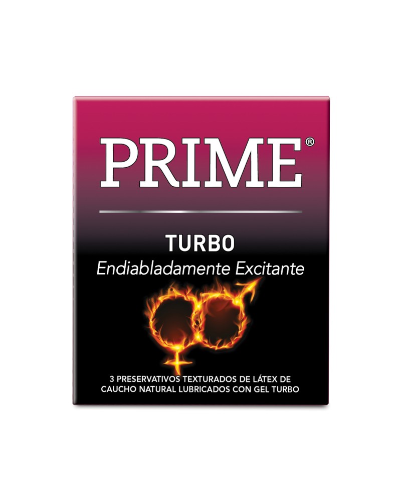 Preservativos Prime Turbo Texturados de Latex. Diseñados a base de caucho natural lubricados con gel turbo, ideales para elevar la intensidad del placer en la pareja, experimentando una inigualable sensación de cosquilleo. Al tener doble lubricación de gel turbo, te genera un efecto intermitente de frío y calor.