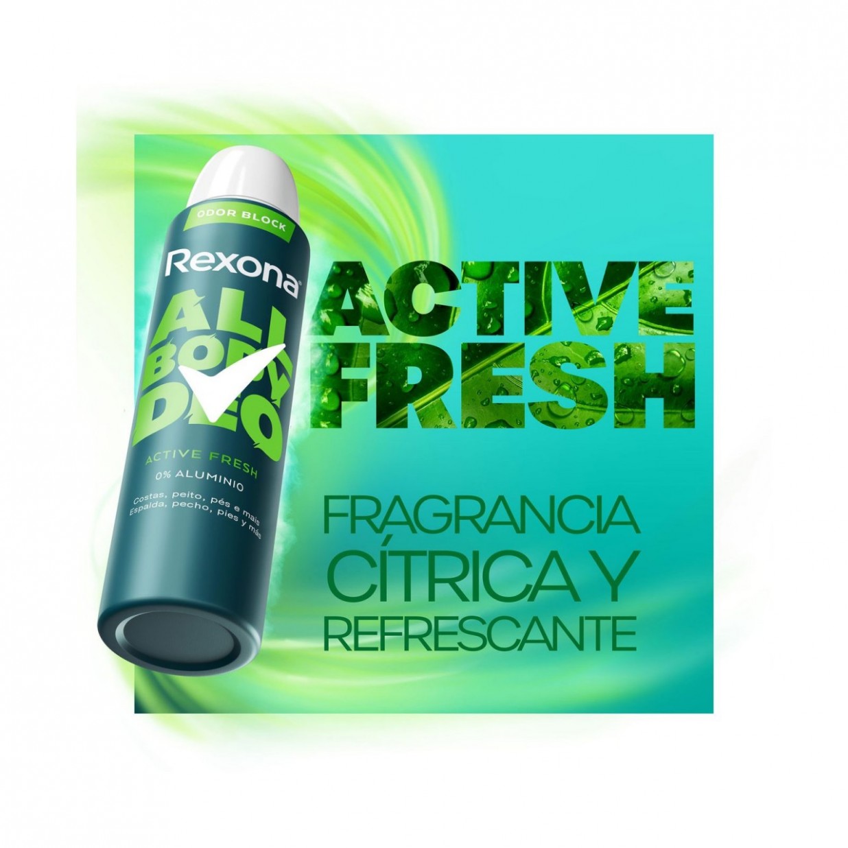 ¡Sumá a tu rutina el nuevo Desodorante en Aerosol para Todo el Cuerpo Rexona All Body Deo Active Fresh 150 ml! Este desodorante se suma a tu rutina de cuidado personal para que te sientas segur y fresco todo el día, controlando el olor de cada parte de tu cuerpo, incluida tu zona íntima.