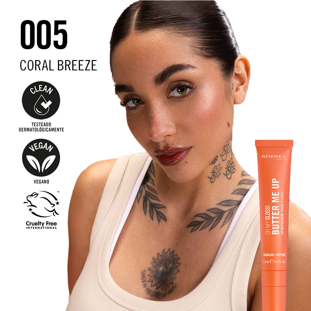 Paso 1 : Aplica el bálsamo labial Butter Me Up Lip Butter Balm de Rimmel London en el centro del labio superior y deslízalo por todo el labio inferior para revelar unos labios nutridos y de aspecto más suave. Paso 2 : Se puede usar debajo o encima de tu lápiz labial Rimmel favorito para lograr labios suaves y flexibles y un brillo ultra brillante o como bálsamo nocturno.