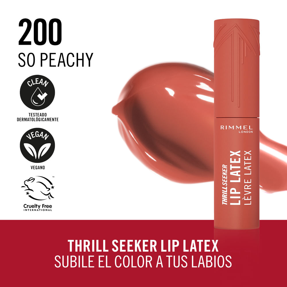 Para un look atrevido e imparable, aplica una pasada de Rimmel Lip Latex empezando por el centro de los labios y difumina hacia el exterior utilizando el aplicador preciso en forma de diamante.