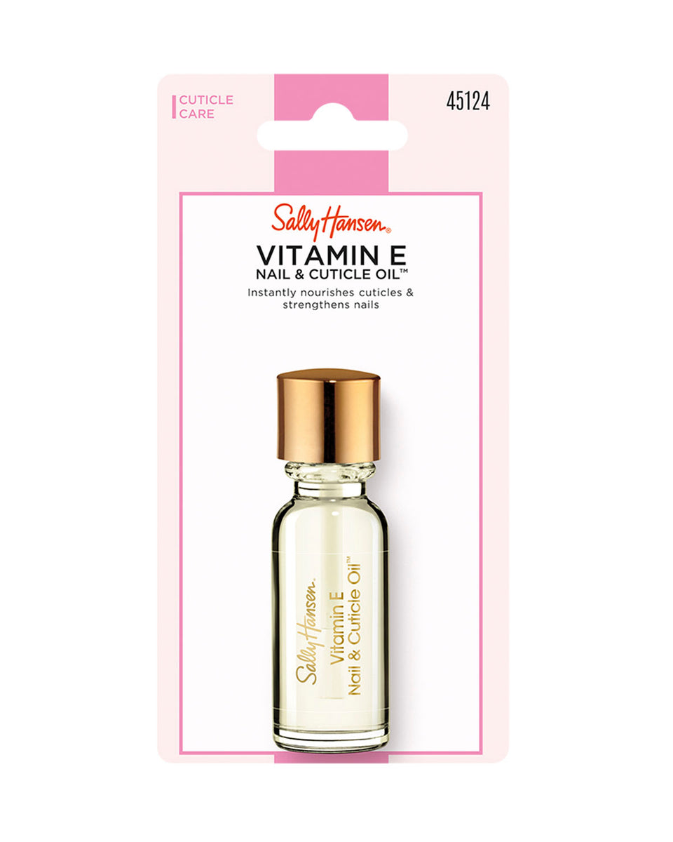 Prepara las cutículas para una manicura perfecta: el aceite para uñas y cutículas de vitamina E de sally hansen suaviza las cutículas duras, secas y dentadas, lo que facilita el trabajo de tu recortadora y empujadora de acero inoxidable.