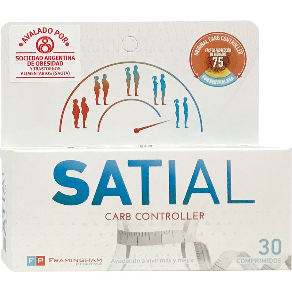 Satial Carb Controller presentación por 30 comprimidos. Es un complemento de la alimentación elaborado en base de ingredientes naturales, que han demostrado en ensayos preclínicos y clínicos su capacidad de disminuir la absorción de hidratos de carbono. Siendo su materia prima original, el primer y único bloqueador de Hidratos de Carbono, con respaldo científico. El componente activo principal es un nutriente específico no estimulante del extracto de poroto blanco, que ha demostrado clínicamente reducir la absorción y digestión del almidon presente en los alimentos hasta en un 75%. Su acción reduce el impacto calórico de los alimentos ricos en almidón, y también disminuye la respuesta de la glucosa y el índice glicémico. Cuando se utiliza junto con una dieta adecuada y ejercicio, SATIAL CARB CONTROLLER ayuda en el control del peso, permitiendo disfrutar alimentos ricos en carbohidratos. La formulación exclusiva de SATIAL CARB CONTROLLER contiene zinc quelatado, logrando de esta manera el aporte del mineral en su forma orgánica, facilitando su absorción, permitiendo que cumpla su función esencial en el metabolismo de los hidratos de carbono.