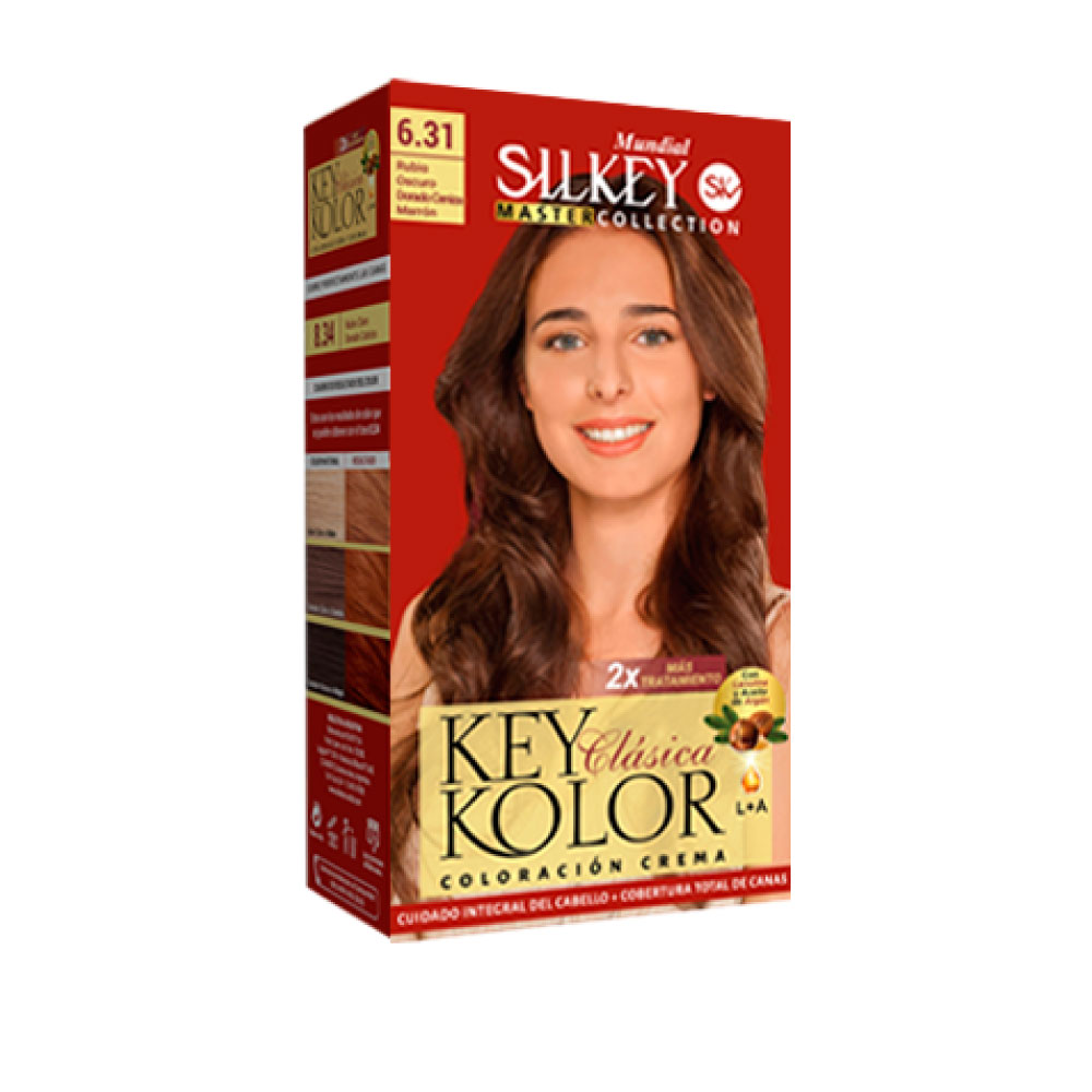 Key Kolor Clásica Master Collection con Aceite de Argán, transforma tu cabello dándole un color radiante, intenso y duradero. Las Moléculas de Lanolina y el Aceite de Argán, nutren el cabello durante el teñido y garantizan mayor Brillo, Suavidad y Duración del Color.