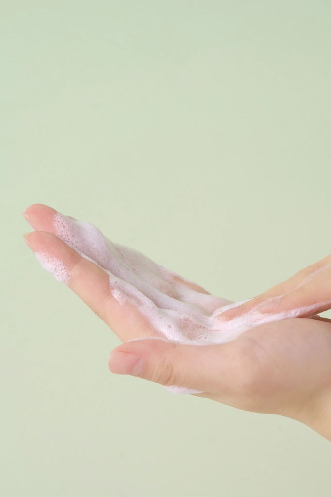 1. Aplicar una cantidad adecuada sobre las palmas húmedas y frotarlas para generar espuma.