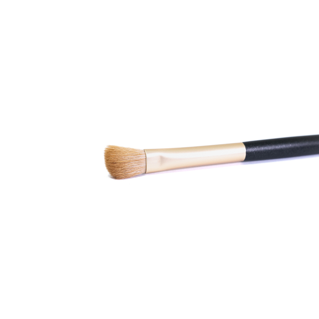 BROCHA - PLIEGUE DE PÁRPADOSNuestra brocha con punta diagonal ayuda a difuminar y mezclar distintos tonos de pigmentos. Ideal - crear detalles y proporcionar profundidad al párpado móvil.