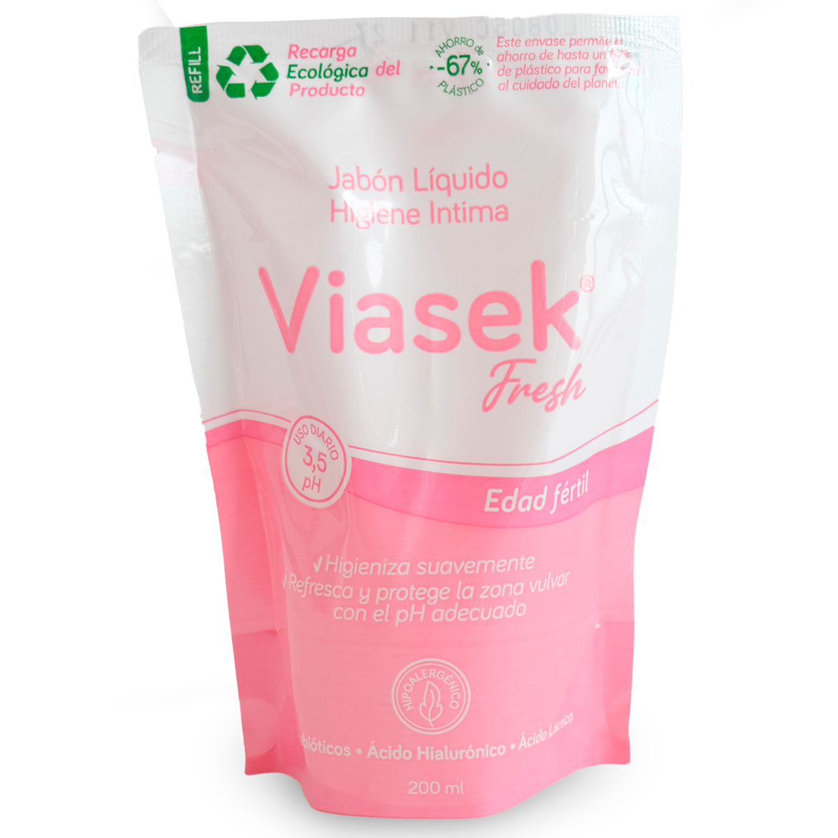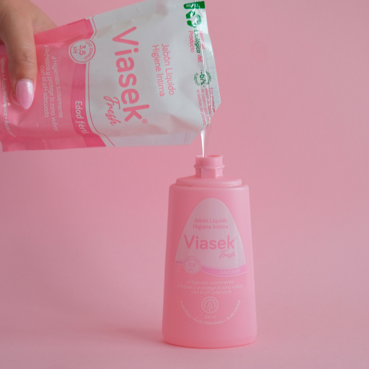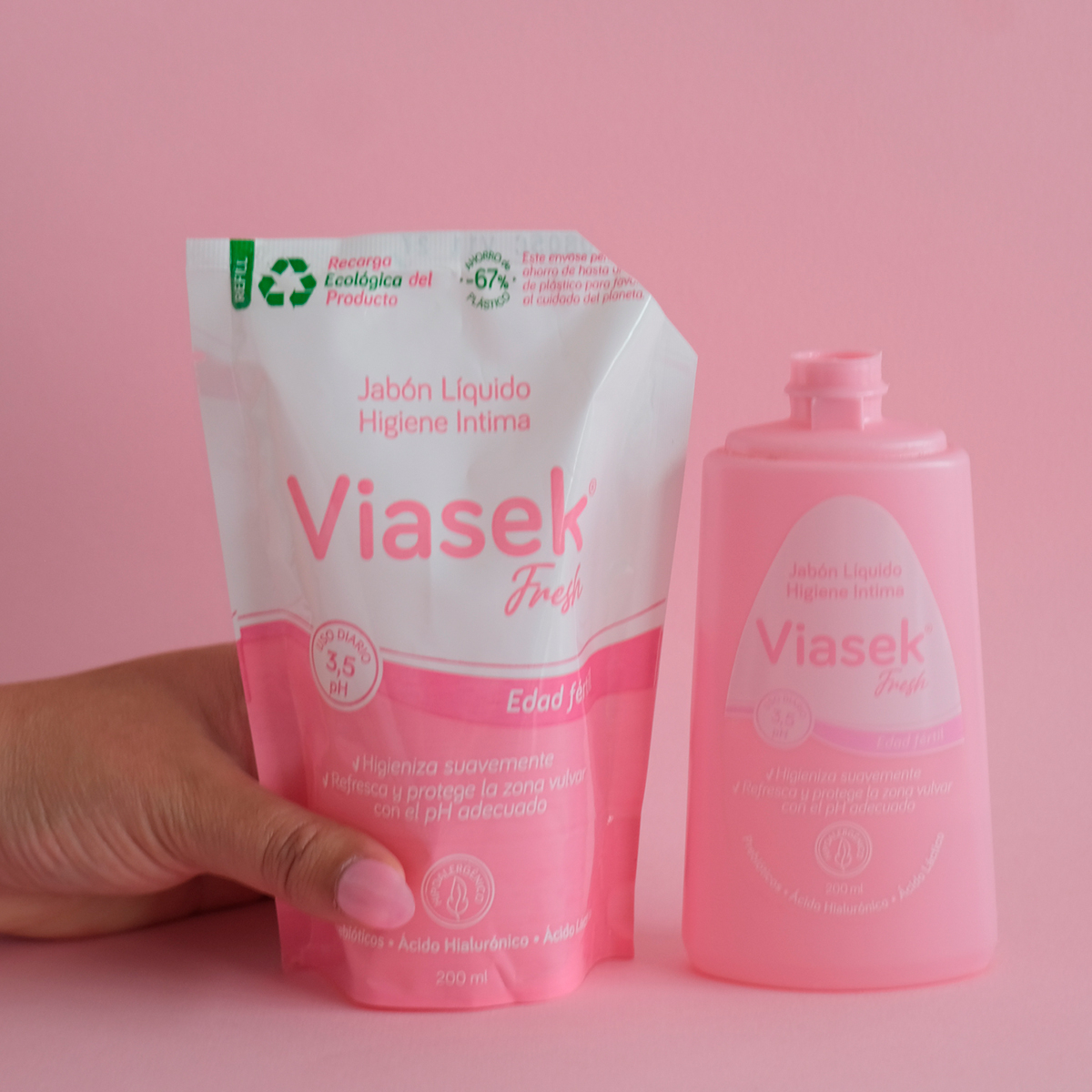 Nueva recarga ecológica Viasek Fresh Jabón Líquido de Higiene Intima pH 3,5, que permite rellenar el envase original reduciendo el uso de plástico hasta un 67%, contribuyendo al cuidado del planeta sin resignar calidad ni rendimiento del producto. Una opción práctica, económica y con foco en la sustentabilidad, alineada al compromiso Viasek con el cuidado más responsable.
