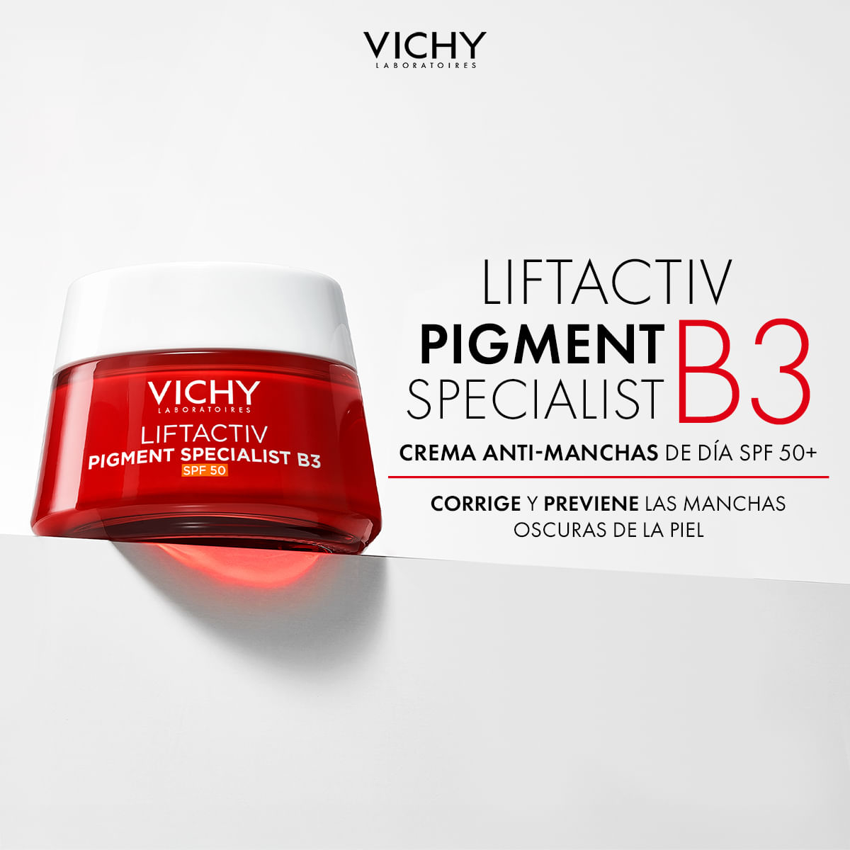 Liftactiv Pigment Specialist B3 Crema de Día SPF50 combate las manchas y arrugas con Niacinamida B3 y Melasyl. Disfruta de una protección SPF50.