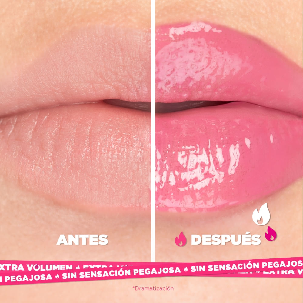 Enriquecido con extracto de jengibre y aceite de coco, que no solo embellece, sino que nutre tus labios, dejándolos con una textura suave. Disfrutá de un efecto voluminizador de larga duración, sin sensación pegajosa y con una aplicación agradable y fresca.